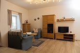 Das Wohnzimmer der Nichtraucher-Ferienwohnung mit Kabel-TV, mit bequemer Sitzgarnitur und separatem Essplatz bietet viel Raum für Entspannung, Spiele, Fernsehabende usw. In der Küche finden Sie Kaffeemaschine, Toaster, Mikrowelle, 4 Platten-Cerankochfeld, Kühlschrank, Dunstabzug, Spülmaschine, Besteck, Geschirr, Töpfe und Pfannen und vieles mehr. In der Dusche finden Sie Hand- und Duschtücher und Fön, im Schlafzimmer das mit Kaltschaum-
